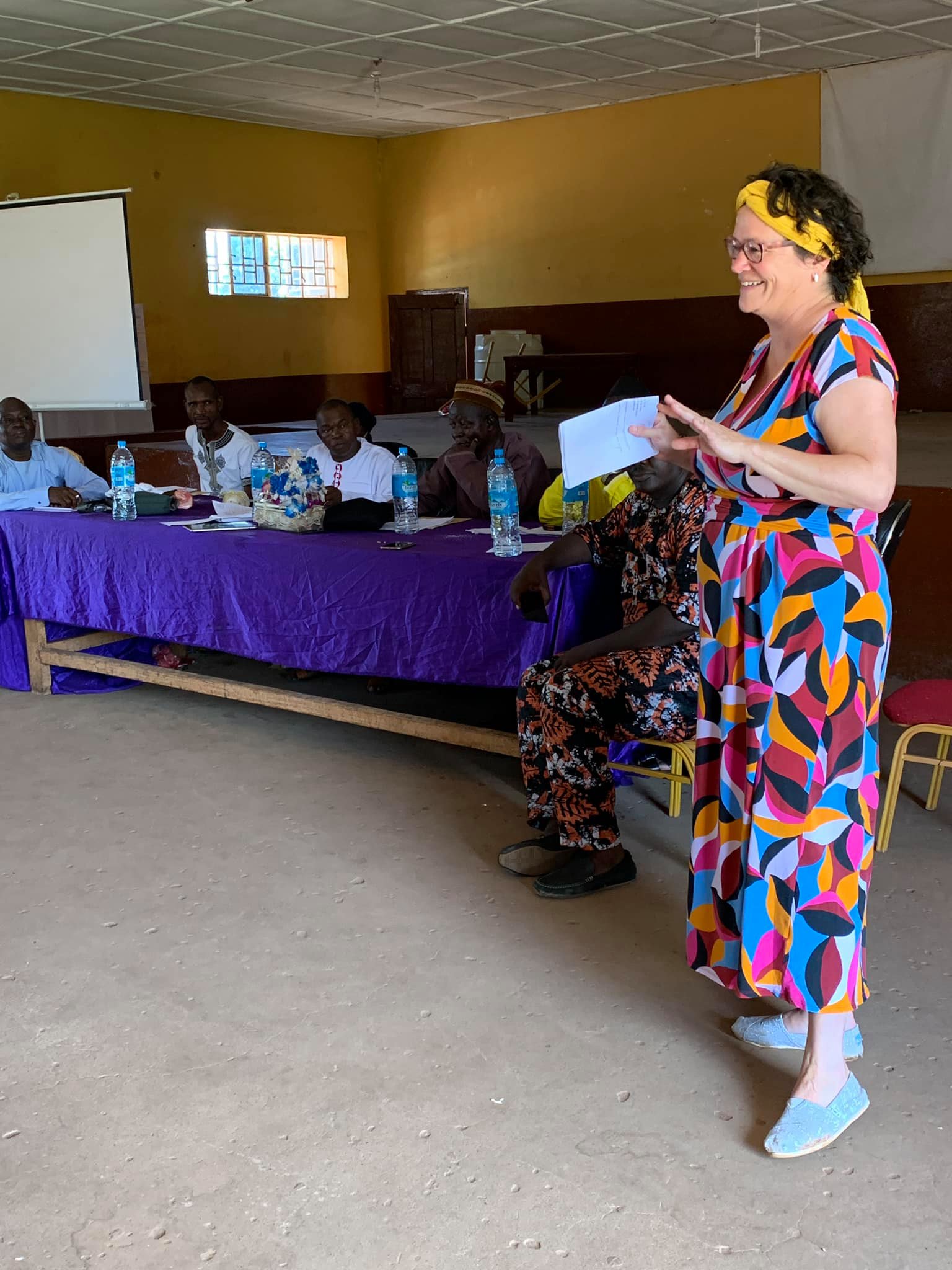 Marion von Oppeln berichtet beim „Karene District Development Coordination Committee Meeting“ über unsere geplanten Aufforstungen im „Sella Limba Chiefdom“. Dabei geht es um ein Projektgebiet von rund 30.000 Hektar (ehemaligen) Regenwaldes!