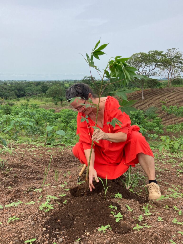 Dieser Kapokbaum hatte sich direkt vor unserer Zentrale in Kamakwie selbst ausgesät, bei einem späteren Durchmesser von mehreren Metern ein denkbar schlechter Standort … Kurzerhand hat Marion in aus- und in unserem neuen Regenwald wieder eingegraben. Dort wird er nun über viele hundert Jahre viel gutes tun.