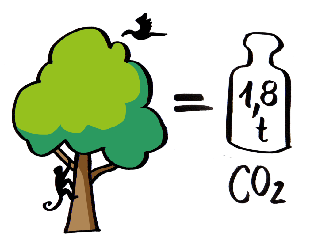 For your own CO2 balance, this means that if you reforest, your emissions will be stored in the trees over the course of decades; if you protect, CO2 offsets immediately. CO2 compensation by means of reforestation is therefore cheaper at €5.56 per ton than immediate compensation (protection) for €9.00 per ton of stored CO2.